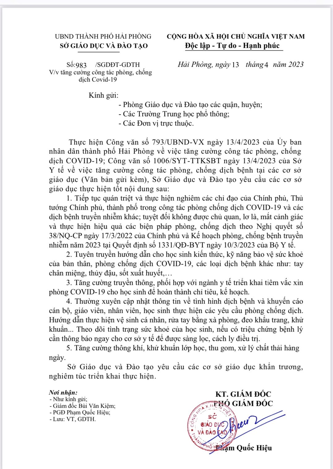 Ngày hiệu lực: 13/4/2023Người ký: Phó Giám đốc Sở GD&ĐT Hải Phòng
